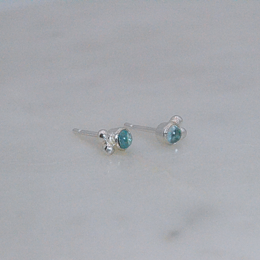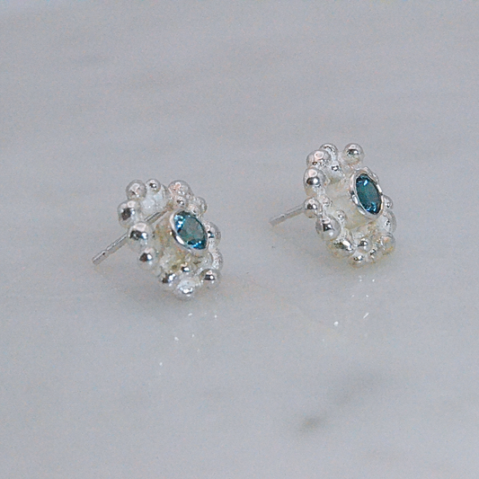 Blue Topaz Silver Stud with Orbit